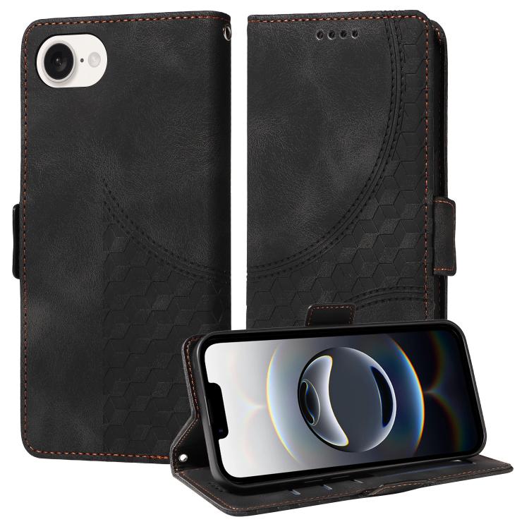 Funda de Cuero para iPhone 16E con Rombos en Relieve y Estrellas (Negra)