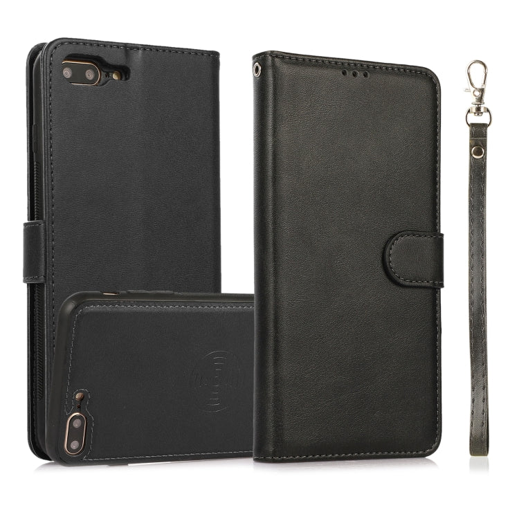 Funda de Cuero Textura de Pantorrilla 2 en 1 para iPhone 8 Plus / 7 Plus con Soporte y Ranuras (Negro)