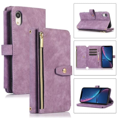 Funda para Teléfono iPhone Xr Dream 9-Card Wallet Zipper Bag de Cuero (Púrpura)