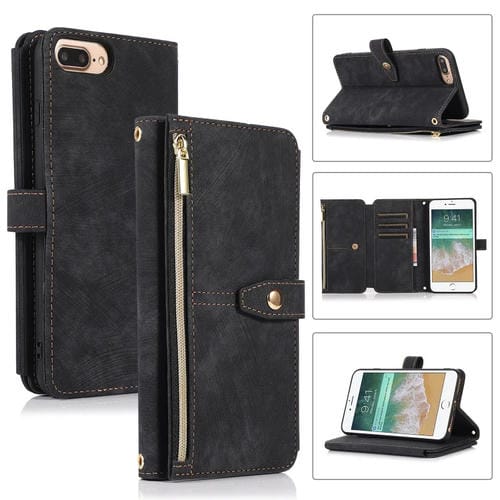 Funda de Cuero para Teléfono iPhone 7 Plus 8 Plus Dream 9-Card Wallet Zipper Bag (Negro)