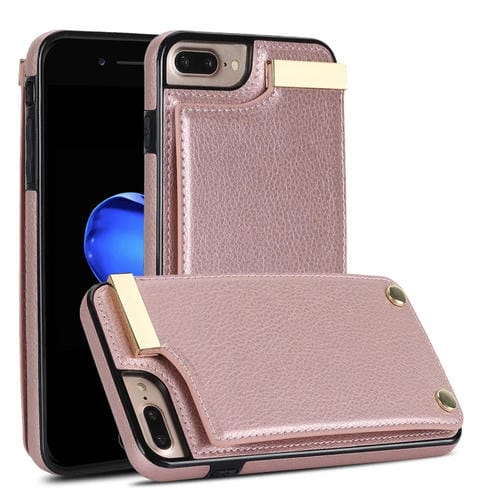 Caja de Teléfono para iPhone 8 Plus y 7 Plus con Ranuras para Tarjetas y Hebilla de Metal (Oro Rosa)
