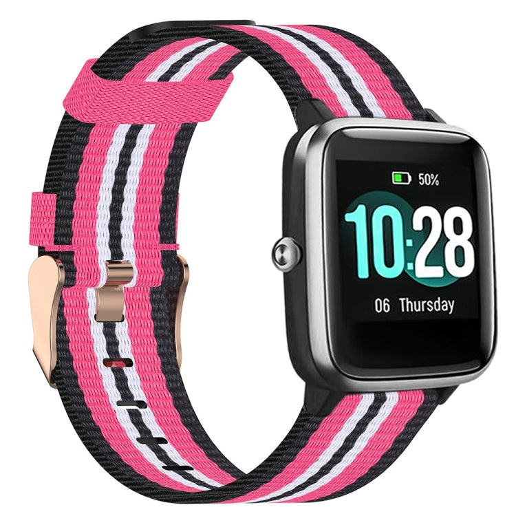 Banda de Reloj Trenzada de Nylon para Id205 19mm (Negro+Rojas de Durazno)