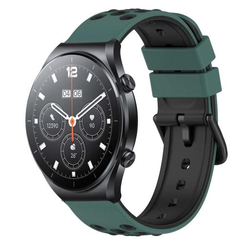 Correa de Reloj Xiaomi Mi Watch S1 Pro 22mm Silicona Porosa Dos Colores (Verde Militar + Negro)