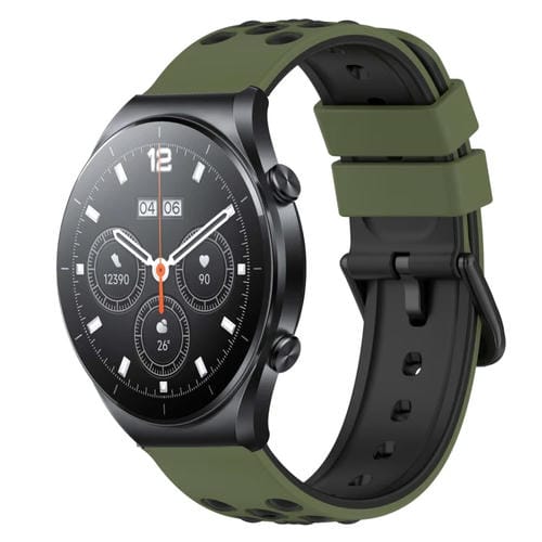 Correa de Reloj Xiaomi Mi Watch S1 Pro 22mm silicona porosa dos colores (Verde Oliva + Negro)