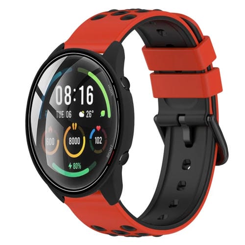 Banda de Reloj Xiaomi Mi Watch Color 22mm Silicona Porosa Dos Colores (Rojo + Negro)