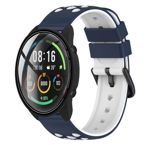 Banda de Reloj Xiaomi Mi Watch Color 22mm Silicona Porosa Dos Colores (Azul Medianoche + Blanco)