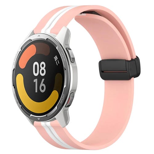 Correa de Silicona para Xiaomi Mi Watch S1 Pro 22mm con Cierre Magnético Plegable (Rosa + Blanco)