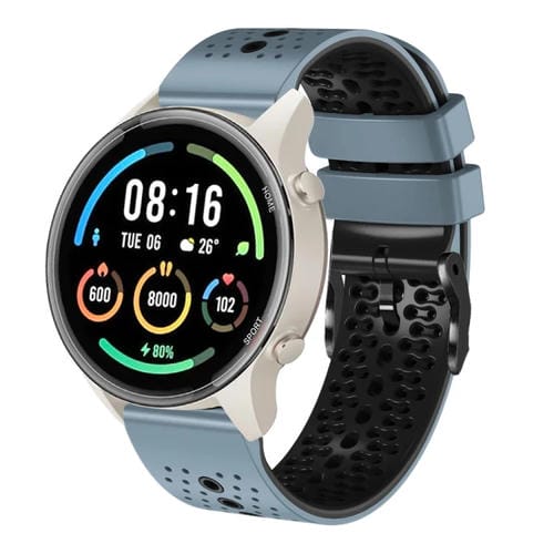 Banda de Reloj para Xiaomi Mi Watch Color 22mm Silicona Bicolor Perforada (Negro + Gris)