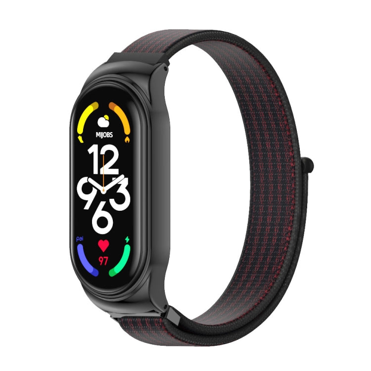 Funda de Acero Inoxidable Mijobs para Xiaomi Mi Band 7 y 7 NFC con Banda de Nylon (Rojo Negro)
