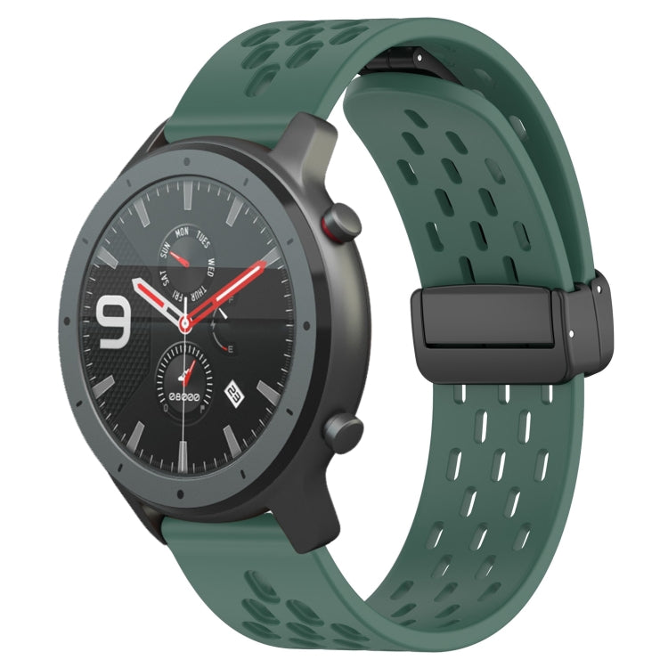 Correa de Reloj Amazfit GTR 47mm 22mm Silicona Cierre Magnético Plegable (Verde Oscuro)