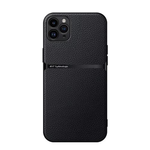 Funda para Teléfono iPhone 11 Pro Max Piel de Lichi Tapa Magnética a Prueba de Golpes (Negra)