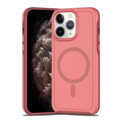 Funda híbrida TPU y PC con Protección Magsafe para iPhone 11 Pro Max (Rojo Vino y Rosa Claro)
