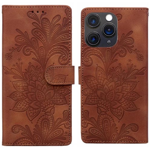 Funda de Cuero con Hebilla Magnética y Diseño Floral En Relieve para iPhone 11 Pro Max (Marrón)