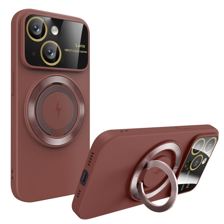 Funda para Teléfono iPhone 15 Plus Soporte Magnético Magsafe Ventana Grande (Rojo Clarete)