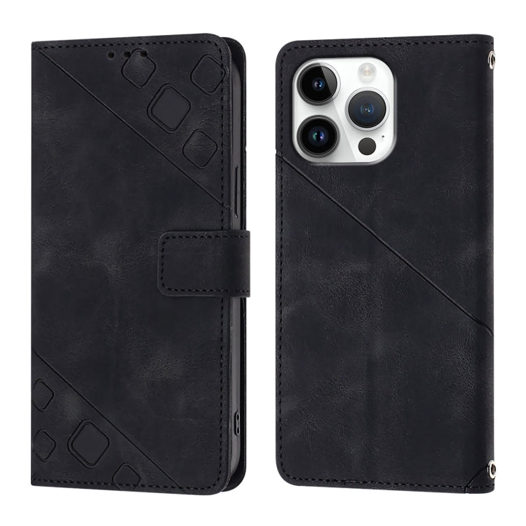 Funda para iPhone 16 Pro Max Cuero Relieve Sensación de Piel (Negro)
