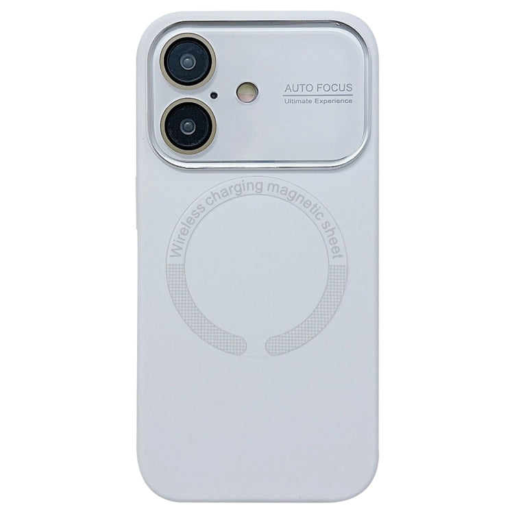 Funda de Silicona Magsafe para iPhone 16 con Lente de Vidrio Acrílico de Ventana Grande (Blanca)
