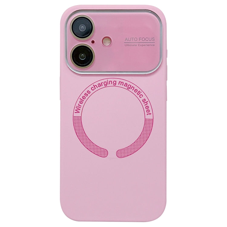 Funda de Silicona Magsafe para iPhone 16 con Lente de Vidrio Acrílico de Ventana Grande (Rosa)