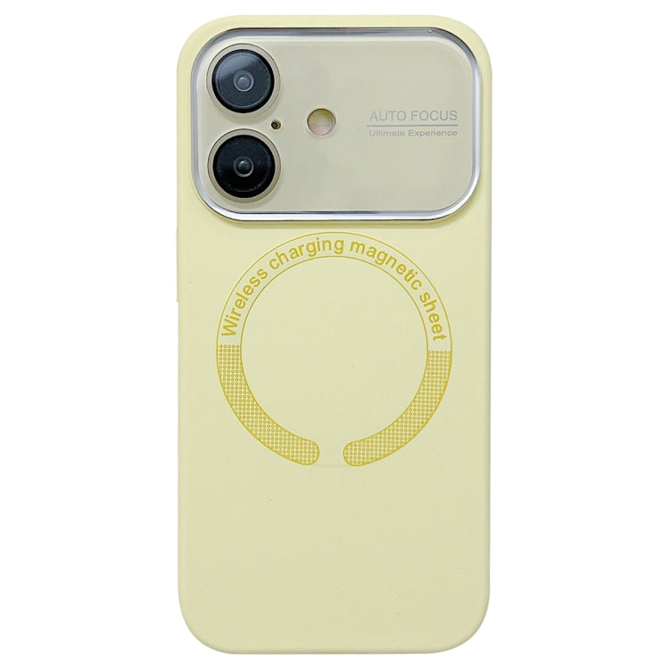 Funda de Silicona Magsafe para iPhone 16 con Lente de Vidrio Acrílico Ventana Grande (Amarillo Crema)