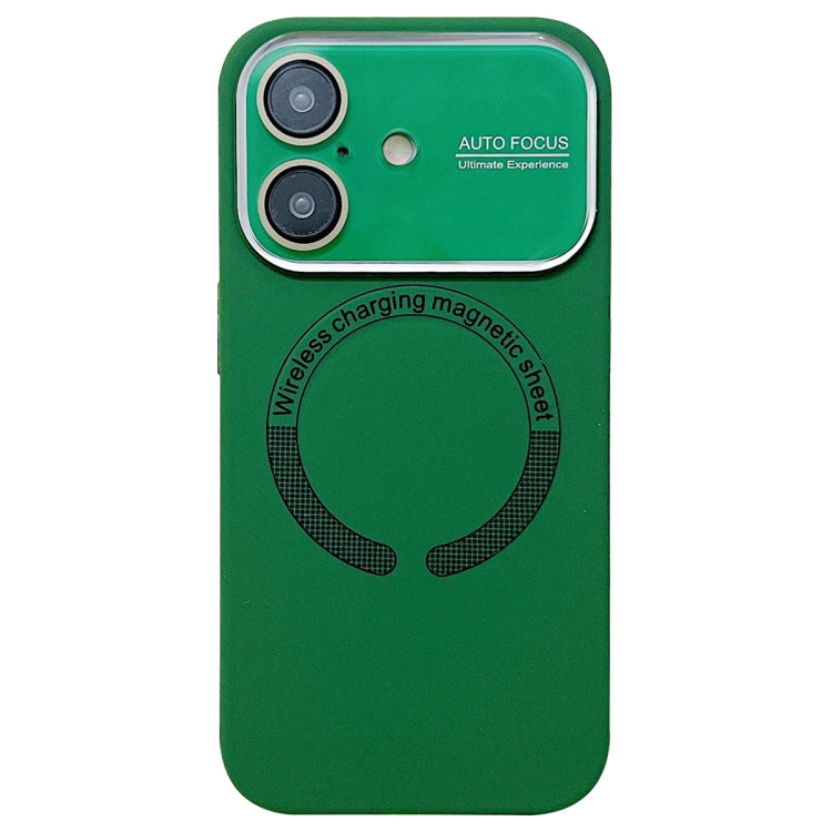 Funda de Silicona Magsafe para iPhone 16 con Lente de Vidrio Acrílico de Ventana Grande (Verde Oscuro)