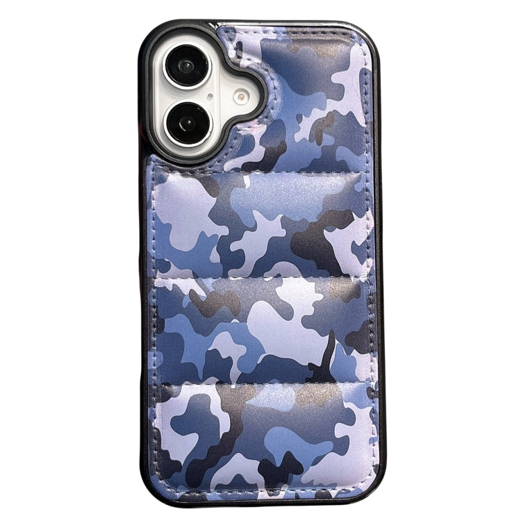 Funda para Teléfono iPhone 16 Airbag Diseño Edredón Camuflaje (Azul-A)
