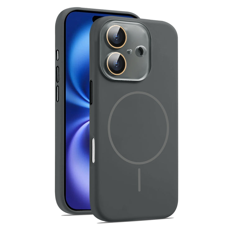 Funda de Silicona Magsafe para iPhone 16 con Lente de Vidrio Acrílico de Ventana Grande (Gris Grafito)