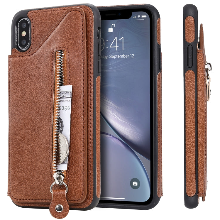 Funda Protectora para iPhone Xs Max Doble Hebilla Cremallera a Prueba de Golpes (Marrón)