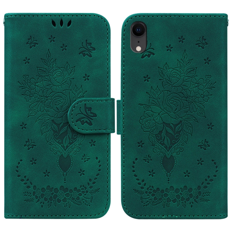 Estuche para teléfono iPhone Xr Butterfly Rose Cuero en Relieve (Verde)