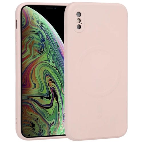 Funda de teléfono Magsafe para iPhone X / Xs cobertura total silicona líquida a prueba de golpes (Rosa)