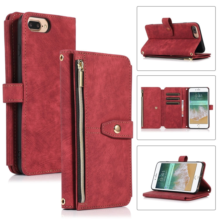 Funda de Cuero para Teléfono iPhone 7 Plus 8 Plus Dream 9-Card Wallet Zipper Bag (Rojo)