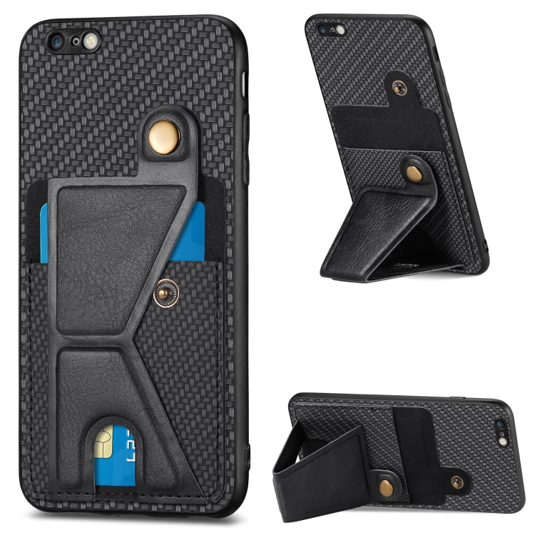 Funda para Teléfono iPhone 6 / 6S Carbon Fiber Wallet Flip Card con Soporte en Forma de K (Negro)