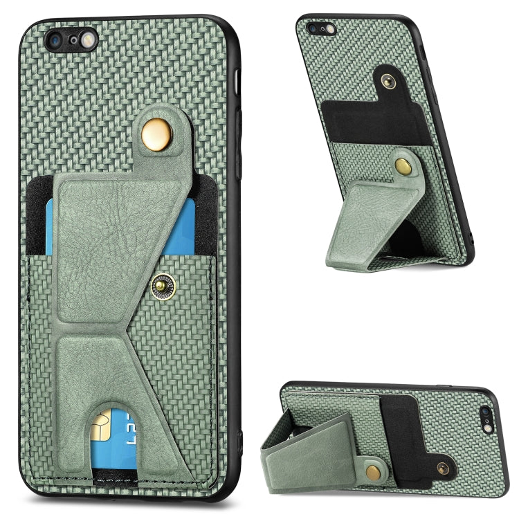 Funda para teléfono iPhone 6 / 6S Carbon Fiber Wallet Flip Card con Soporte en forma de K (Verde)