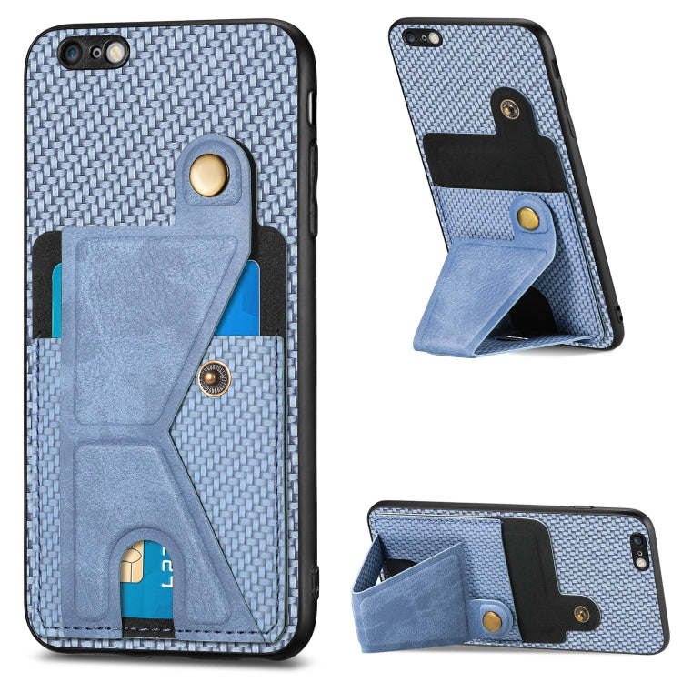 Funda Cartera para iPhone 6 Plus 6S Plus Fibra de Carbono Flip Card con Soporte en Forma de K (Azul)