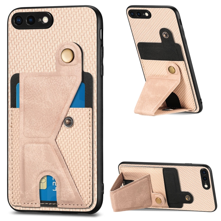 Funda Cartera para iPhone 7 Plus y 8 Plus Fibra de Carbono Flip Card con Soporte en Forma de K (Caqui)