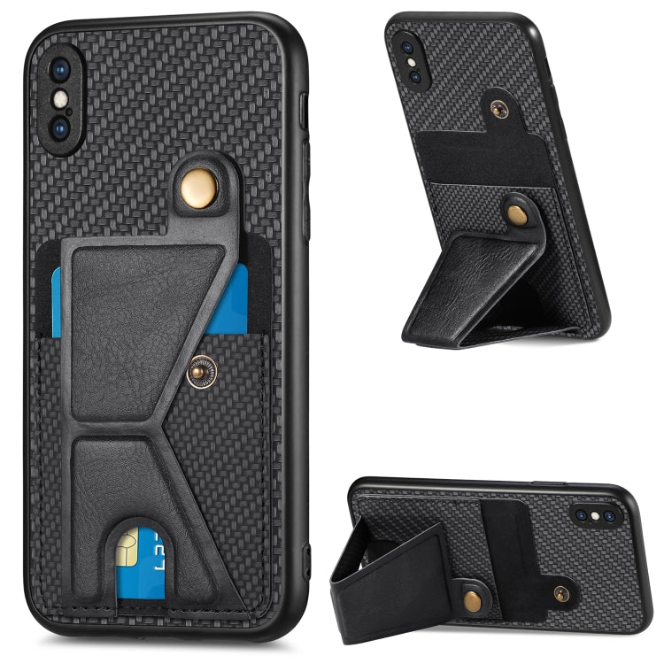 Funda de teléfono para iPhone Xs Max con bolsa de tarjeta magnética de fibra de carbono (Negro)