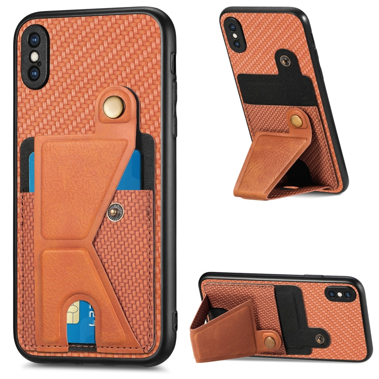 Funda para iPhone Xs Max Carbon Fiber Wallet Flip Card con Soporte en Forma de K (Marrón)