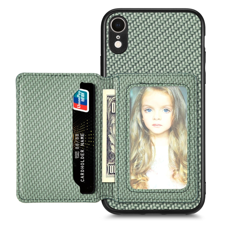 Funda para Teléfono Fibra de Carbono iPhone Xr con Bolsa de Tarjeta Magnética (Verde)