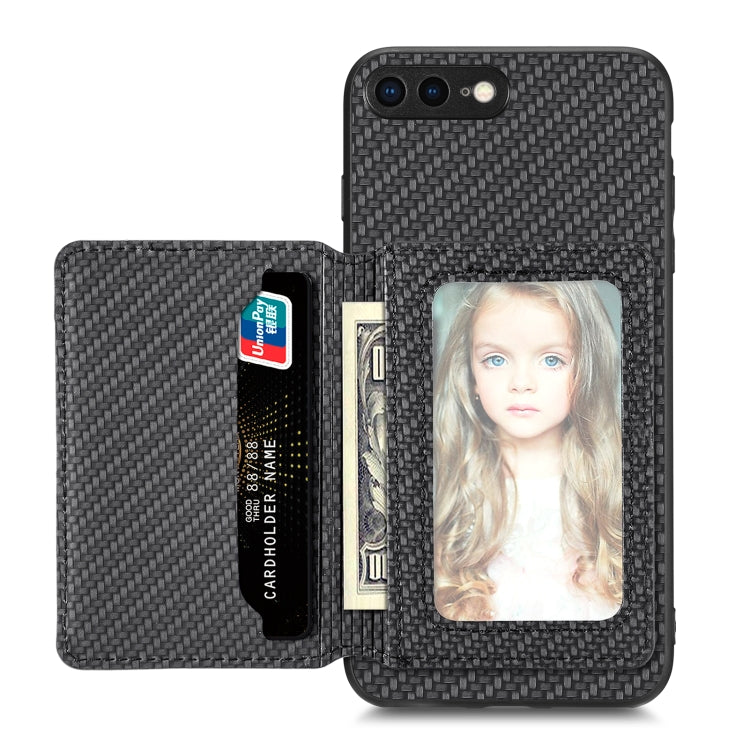 Funda magnética para teléfono iPhone 7 Plus 8 Plus Tarjeta Cuero Fibra de Carbono Magsafe (Negro)