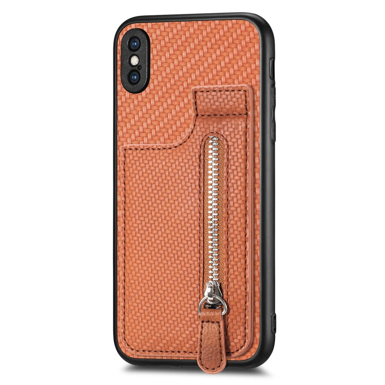 Funda de teléfono iPhone X / Xs con cremallera vertical de fibra de carbono (Marrón)