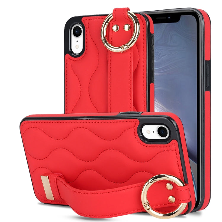 Funda para iPhone Xr Antideslizante de PU con Anillo y Muñequera (Rojo)