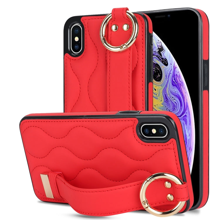 Funda para teléfono iPhone Xs Antideslizante Cobertura Completa Anillo Pu con Muñequera (Rojo)