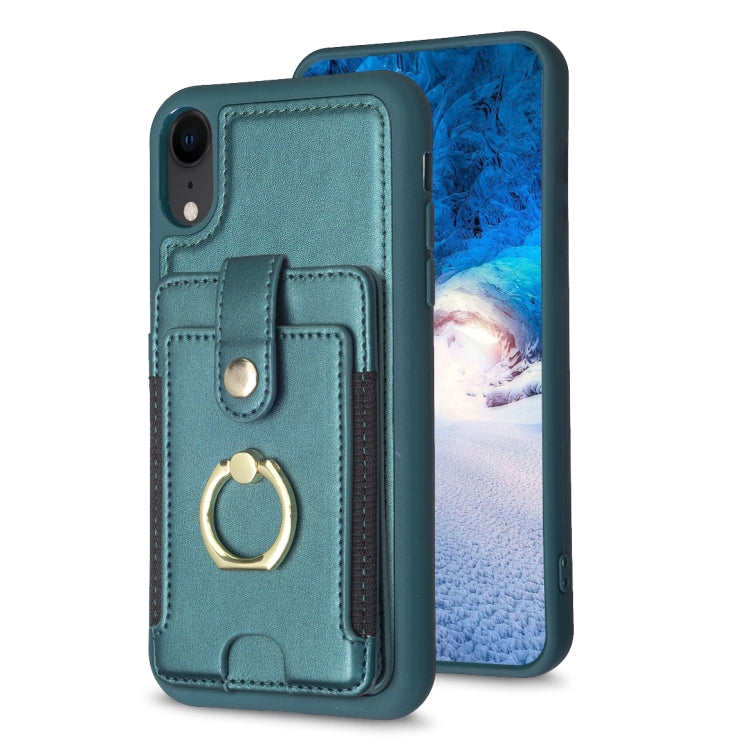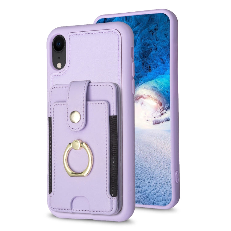 Funda para Teléfono iPhone Xr Bf27 con Soporte y Tarjeta de Anillo de Metal (Púrpura)