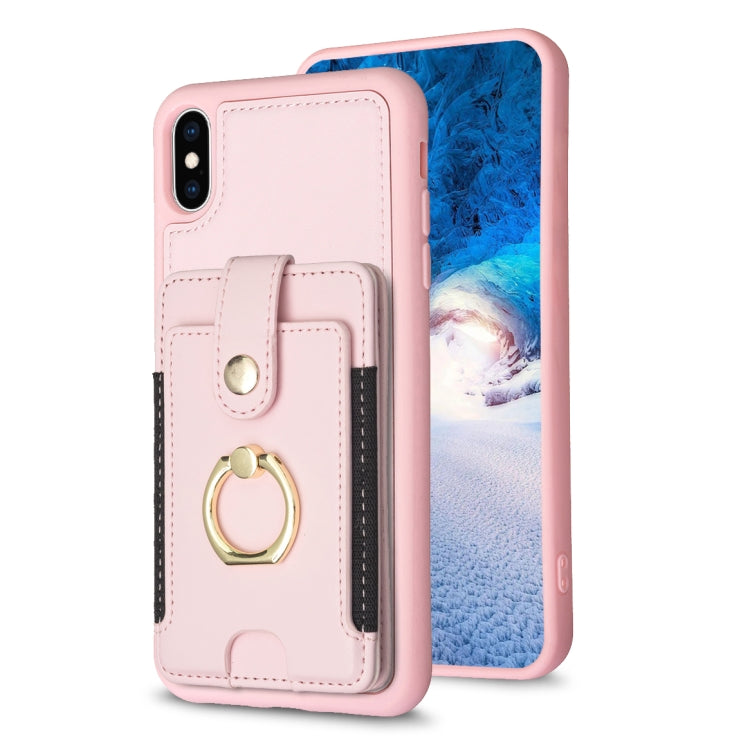 Funda para Teléfono Bf27 para iPhone Xs Max con Soporte para Tarjeta y Anillo de Metal (Rosa)