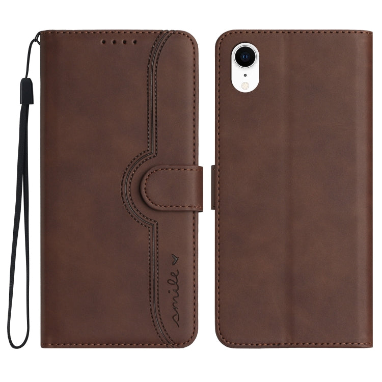Funda para iPhone Xr Skin Feel con patrón de corazón de cuero (Marrón)