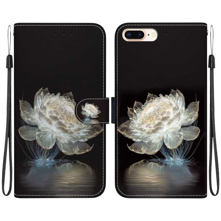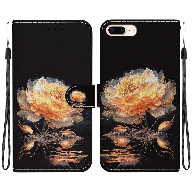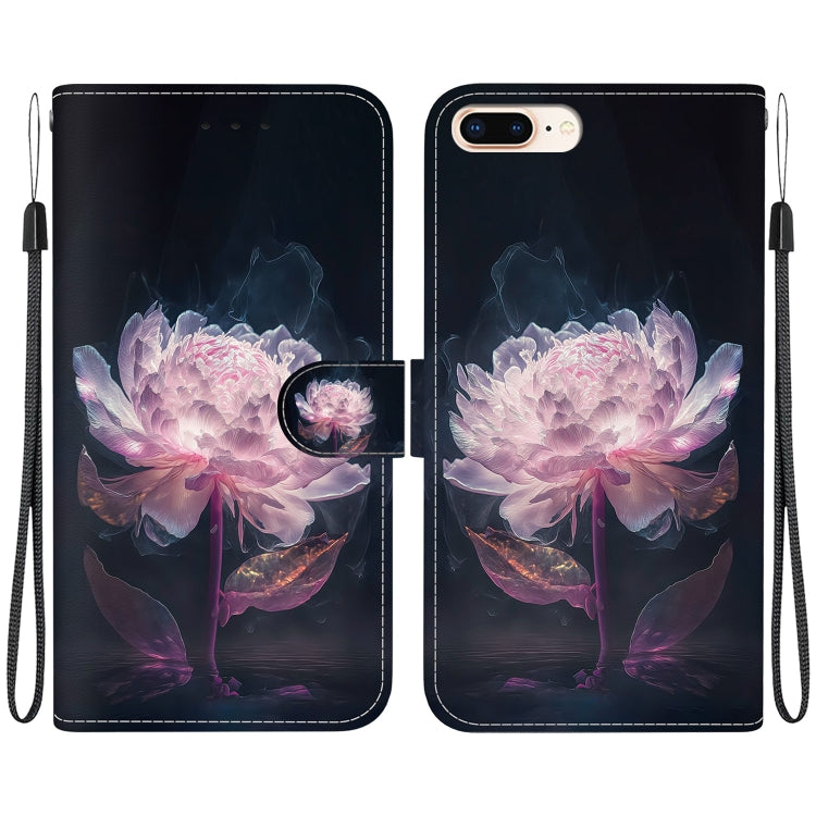 Funda para Teléfono iPhone 8 Plus/7 Plus Cuero Dibujo Coloreado Textura de Cristal (Peonía de Cristal)