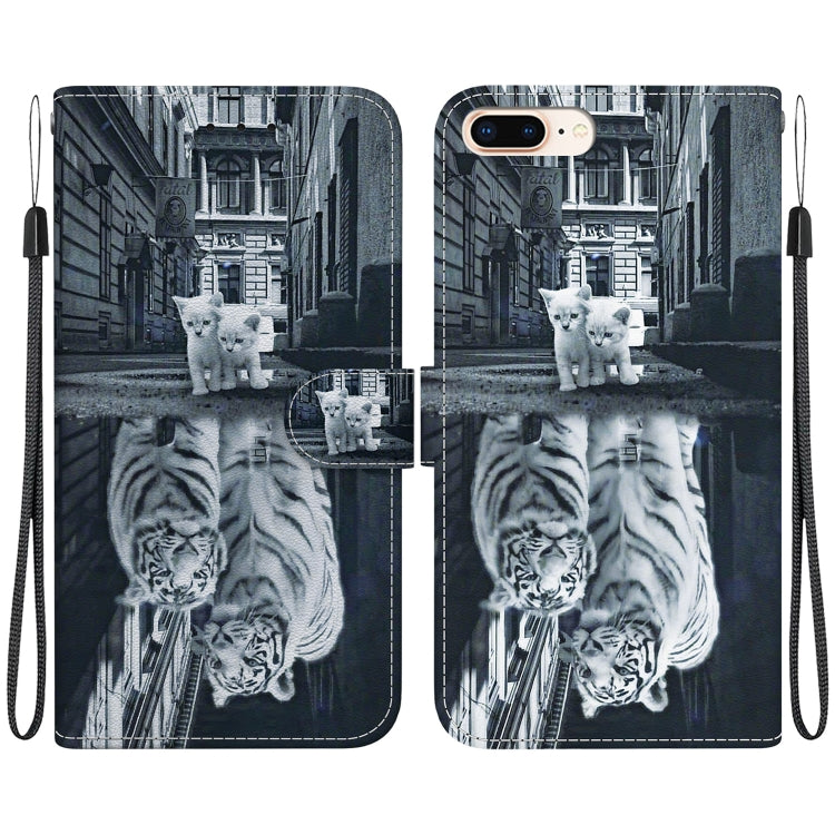Funda para Teléfono iPhone 8 Plus/7 Plus Cuero Dibujo Coloreado Textura Cristal (Reflejo de Tigre Gato)