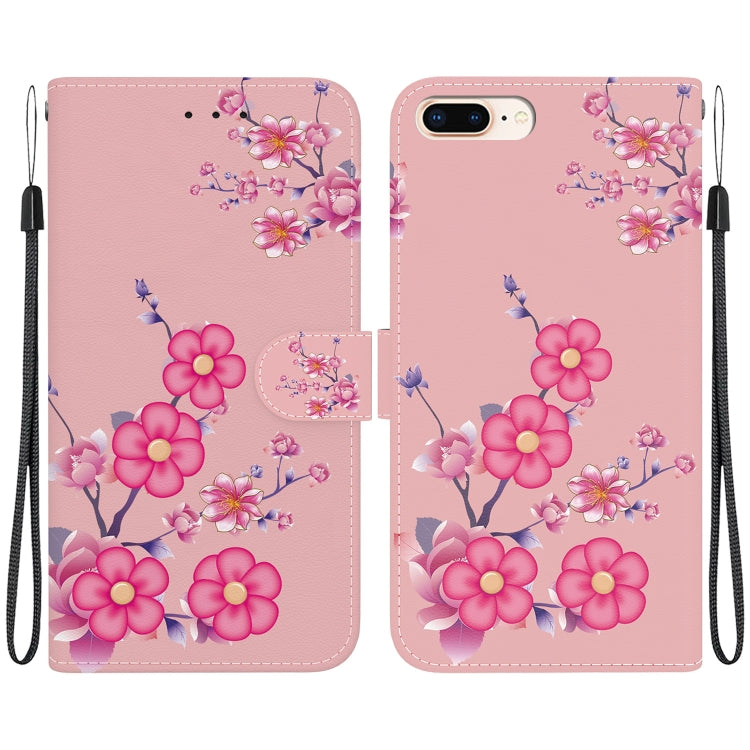 Funda para Teléfono iPhone 8 Plus/7 Plus Cuero Dibujo Coloreado Textura Cristal (Flores de Cerezo)