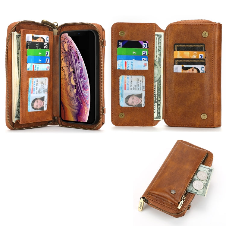 Funda para iPhone Xr Crossbody de Cuero con Billetera y Cremallera Multifuncional (Marrón)