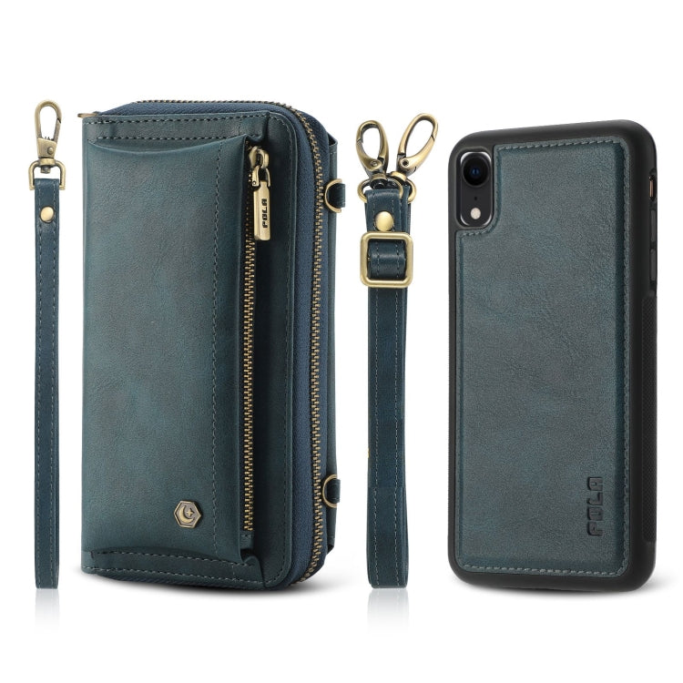 Funda de Cuero Crossbody para iPhone Xr con Billetera y Cremallera Multifuncional (Verde)