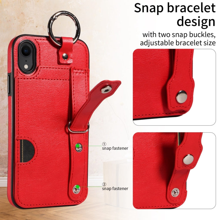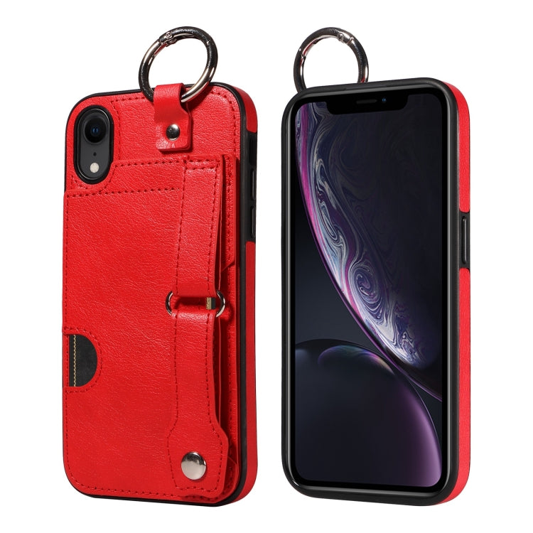 Funda para Teléfono iPhone Xr con Anillo y Ranura para Tarjeta Textura de Pantorrilla (Rojo)