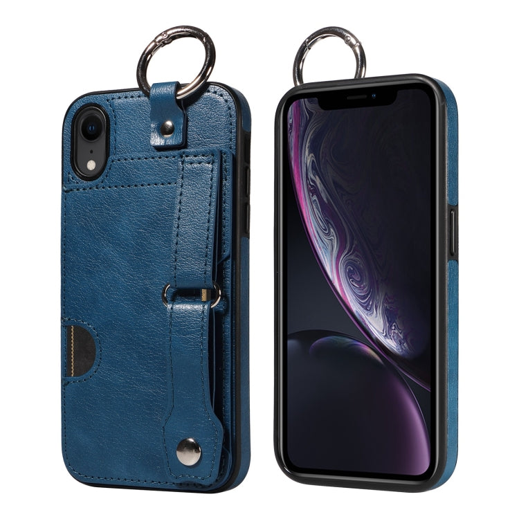Funda para Teléfono iPhone Xr con Anillo y Ranura para Tarjeta Textura de Pantorrilla (Azul)